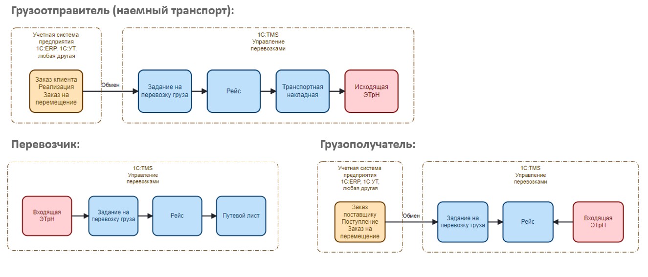 Схема работы с ЭТрН с использованием 1С:TMS